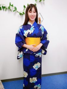 浴衣はうちのデザイナー川口に着付けてもらいました